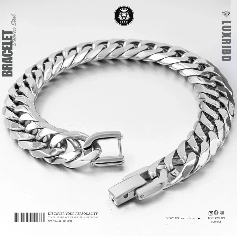 100% SS Weaving a Ramses Wide Curb Chain Bracelet For Men 15mm
