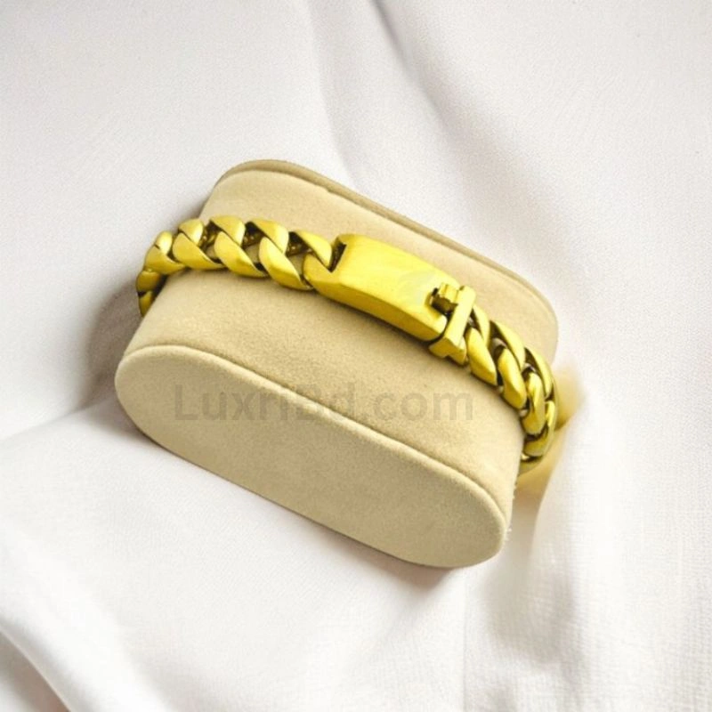 This bracelet is made from high-grade 316L stainless steel, known for its superior resistance to rust, water, and daily wear. The matte golden finish delivers a refined yet masculine look that pairs perfectly with casual outfits, office wear, and special occasions.
