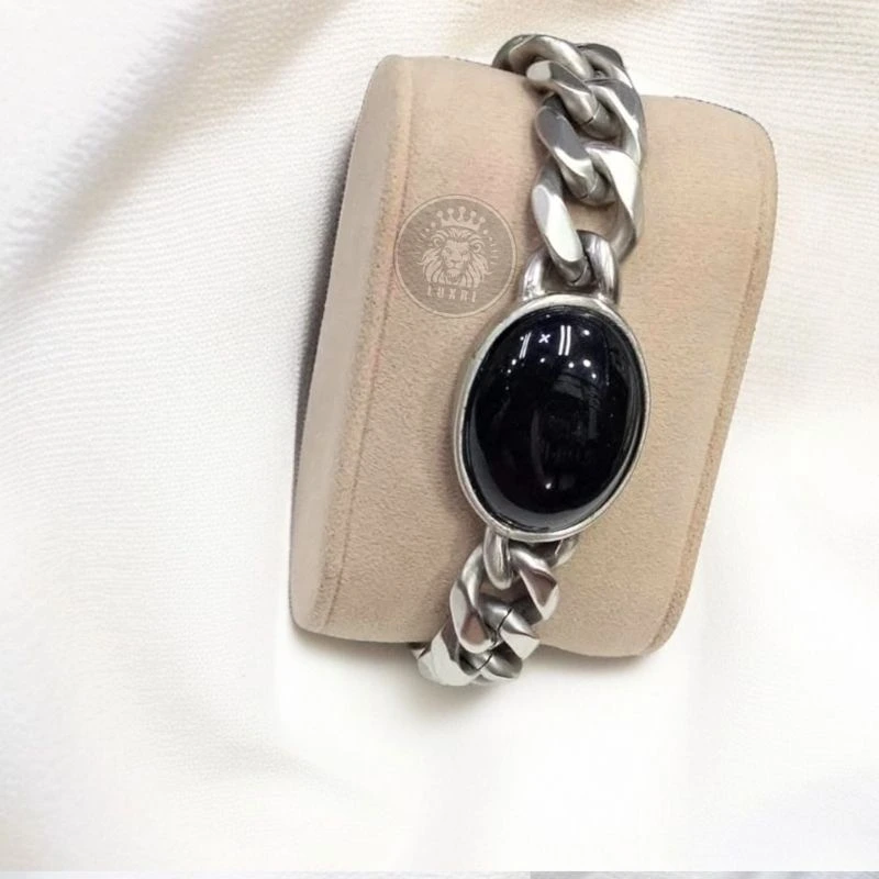 12mm Cuban chain bracelet, stainless steel silver plated bracelet, black stone bracelet, Salman Khan style bracelet