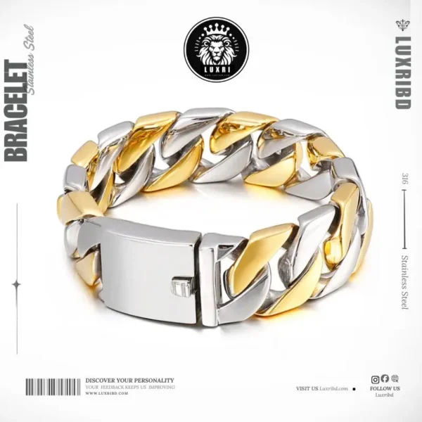 Elevate your style with this 20mm Heavy Gold & Silver Cuban Chain Bracelet for Men, designed for bold personalities and powerful fashion statements. Crafted from 100% high-quality 316L stainless steel, this bracelet delivers exceptional durability, corrosion resistance, and long-lasting shine.