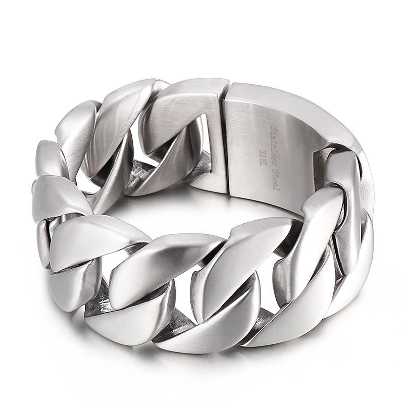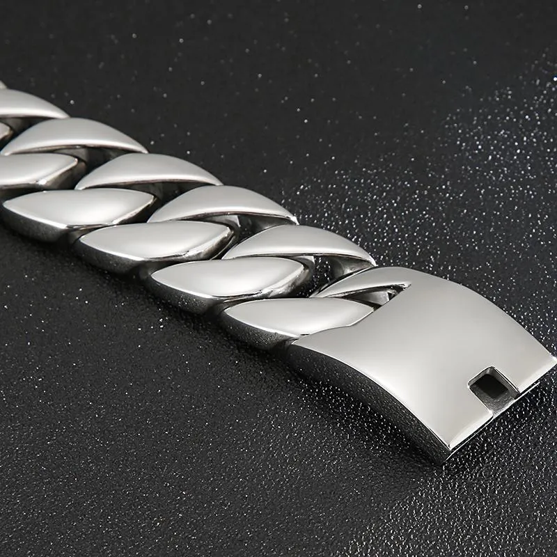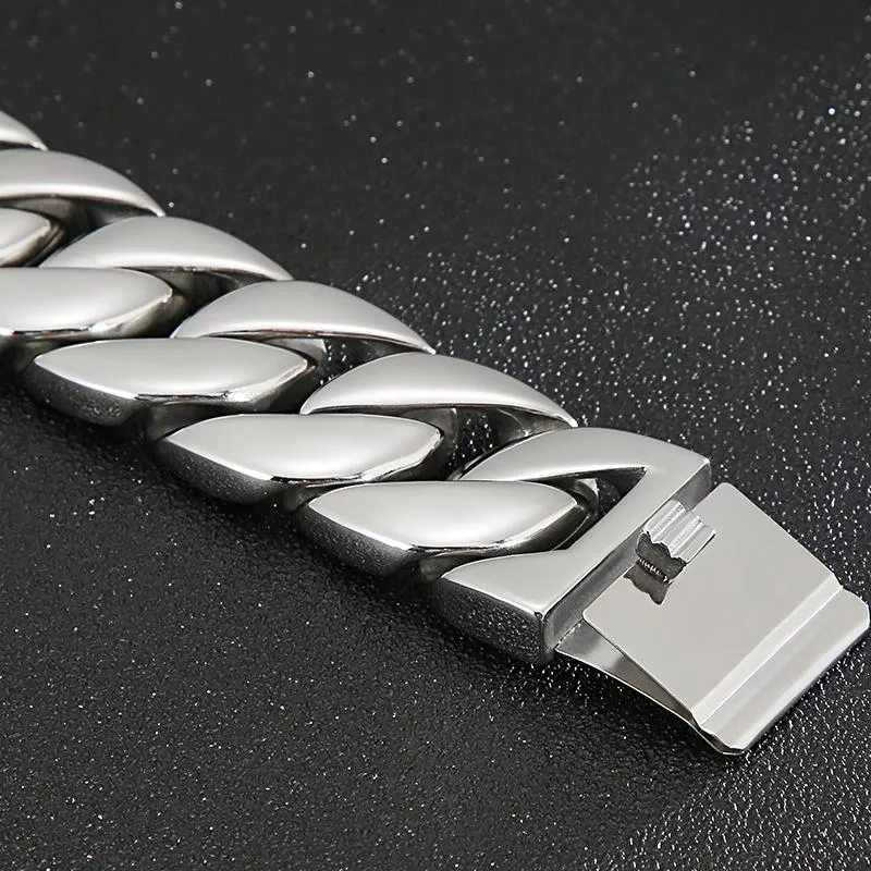 32mm Heavy Men’s Silver Stainless Steel Cuban Link Chain Bracelet – Chunky Biker Curb Wrist Chain 32mm Heavy SS Silver Cuban Link Bracelet For Mens