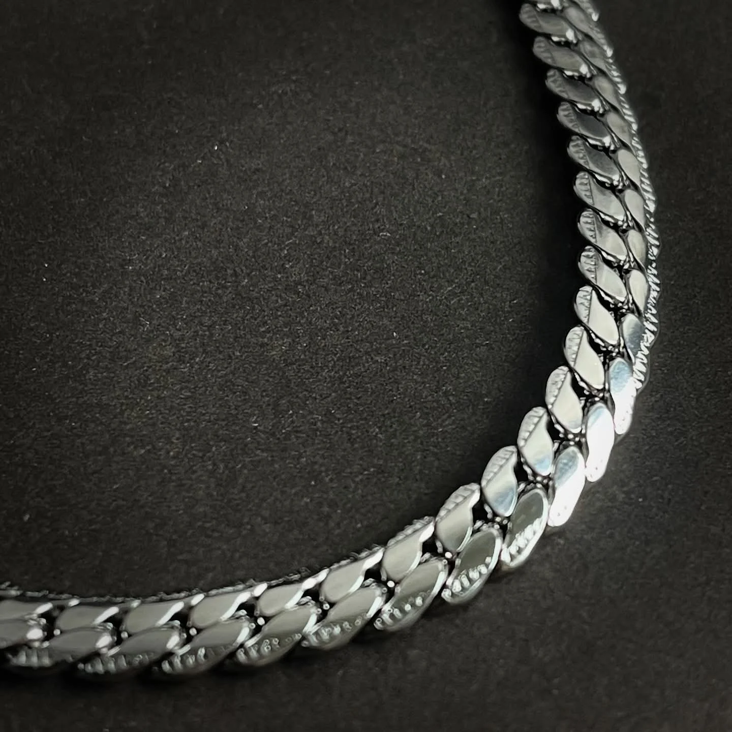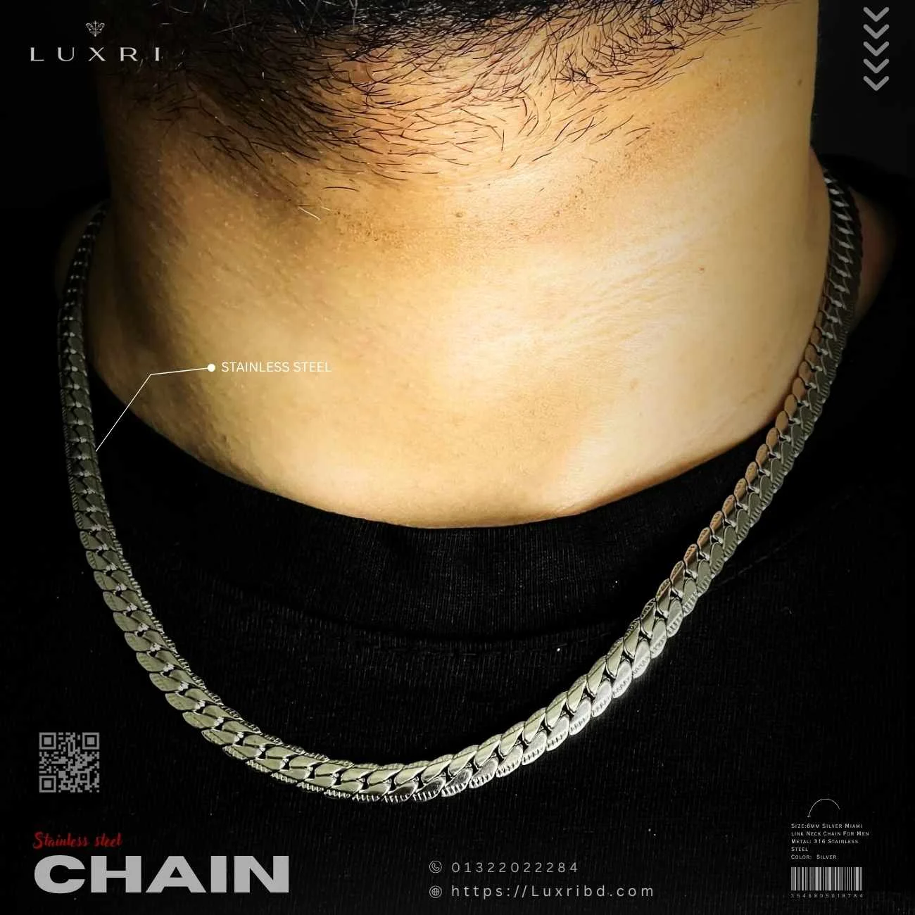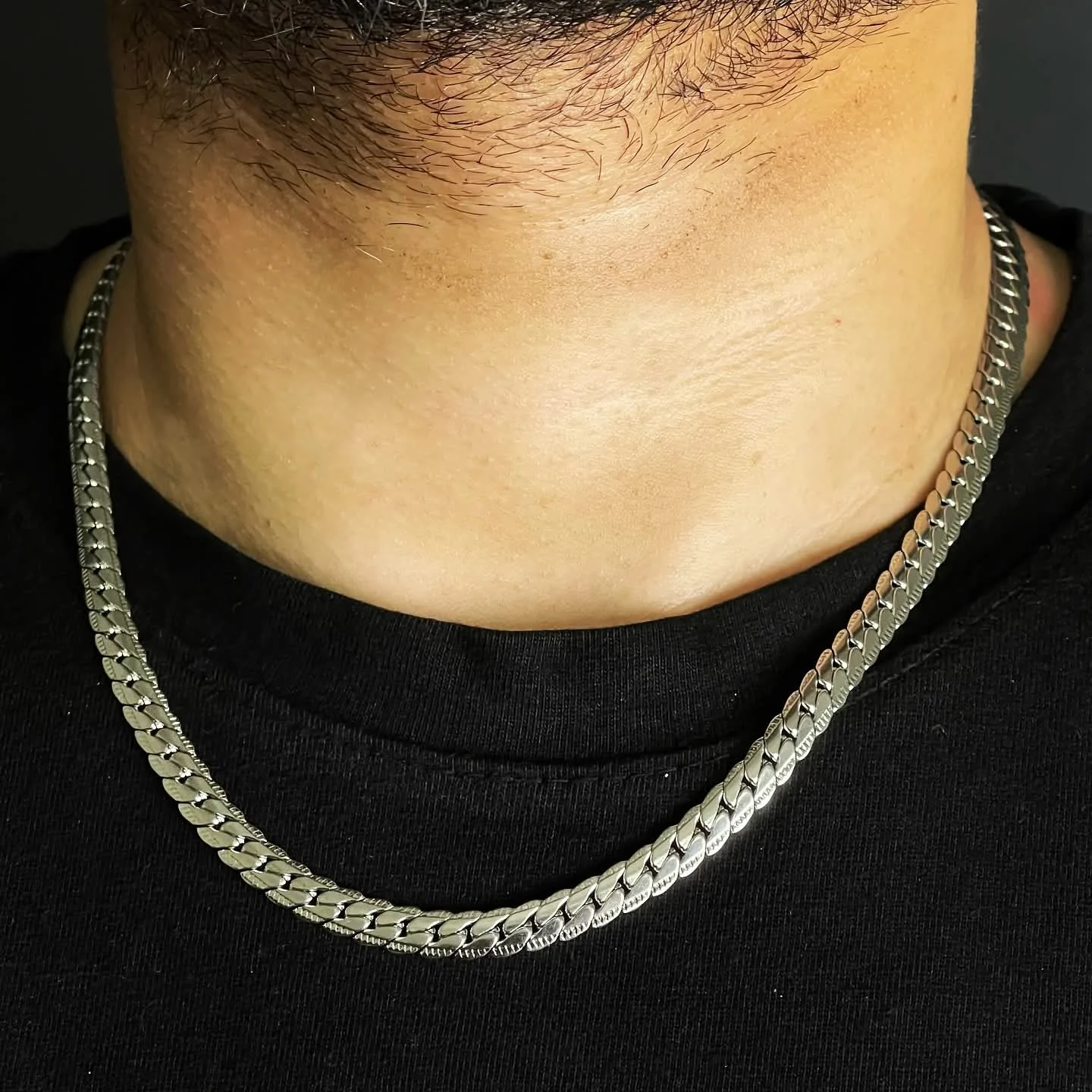 Crafted from high-quality stainless steel, this chain is built to last. The material ensures resistance to tarnishing, rust, and daily wear and tear, making it a practical yet fashionable choice. The precision-cut links add to its premium aesthetic, reflecting light beautifully and catching attention wherever you go. It’s not just an accessory; it’s a statement of resilience and style.