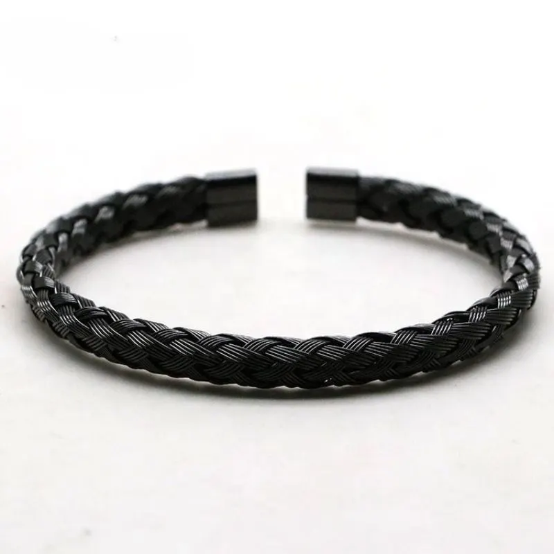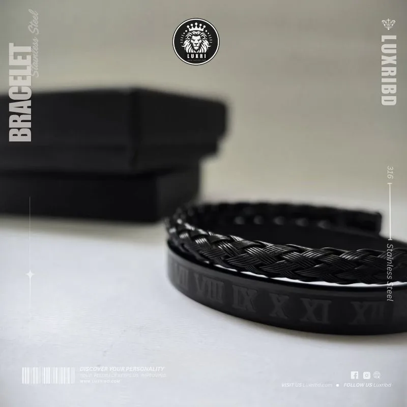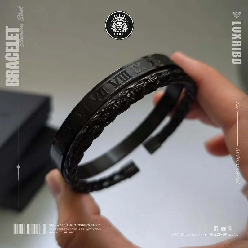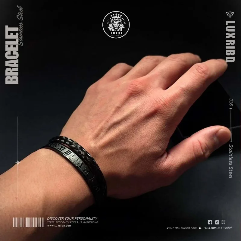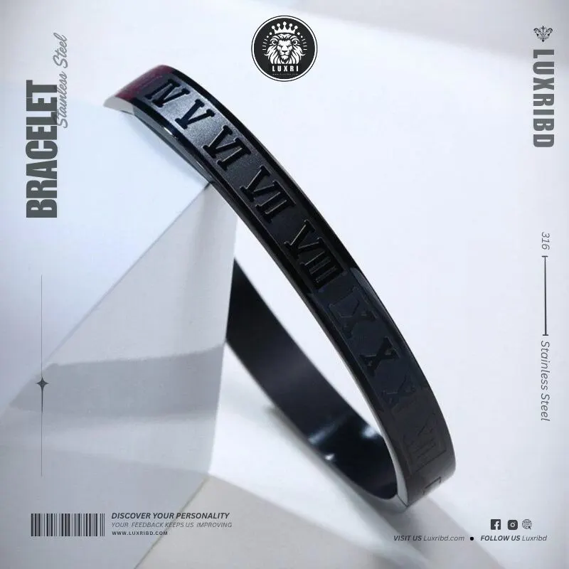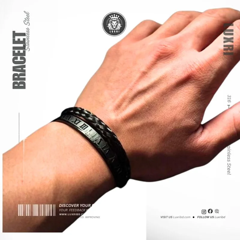 Whether paired with formal attire or dressed down in casual wear, the Steel Twisted Wire Cuff and Roman Numeral Bracelet in black effortlessly complements your unique style. The classic black color and understated design make it suitable for any occasion, from business meetings to casual outings or even night events. This bracelet is more than just an accessory—it reflects a commitment to style and individuality.
